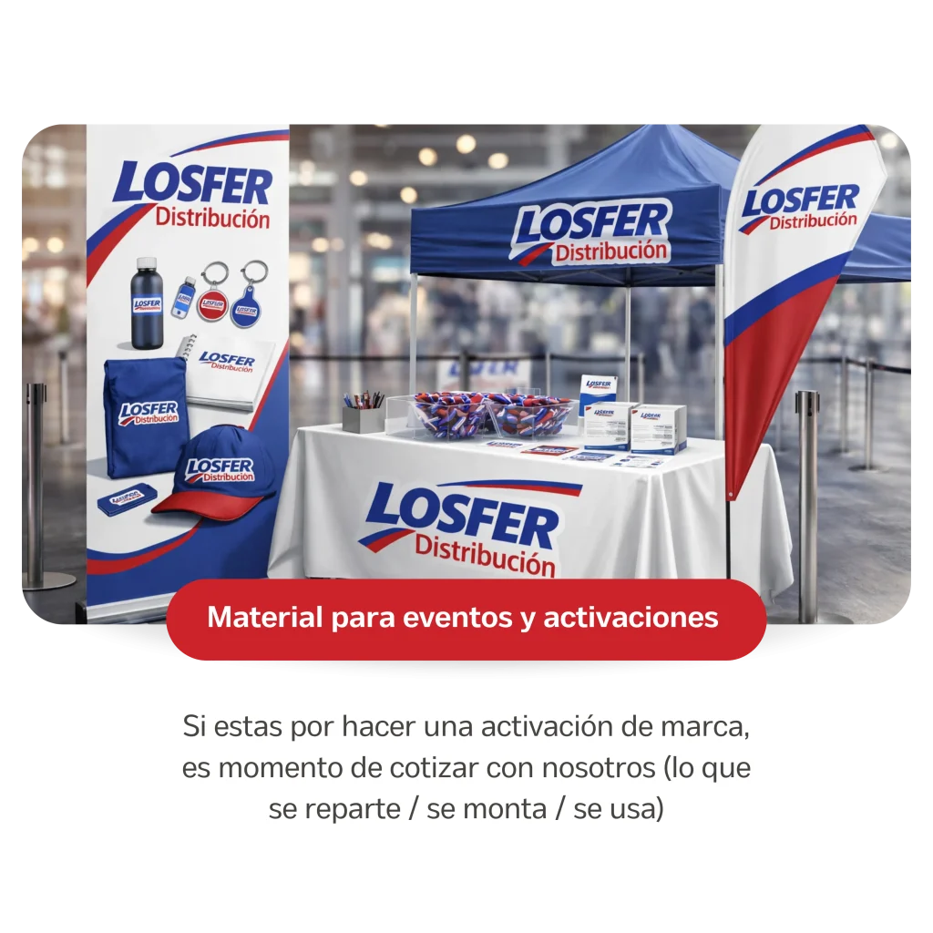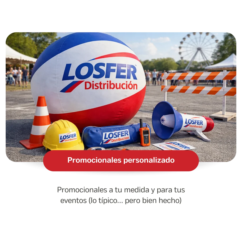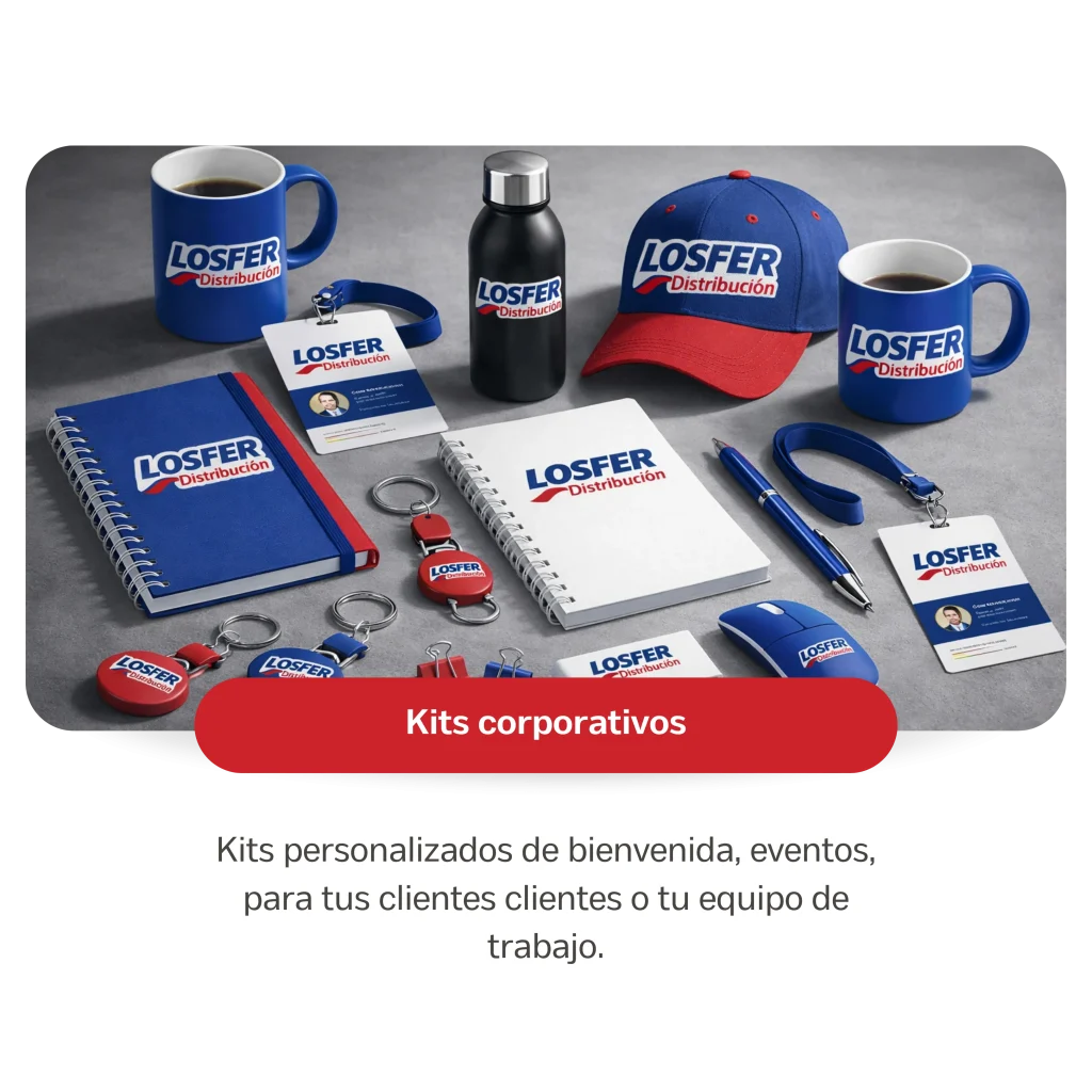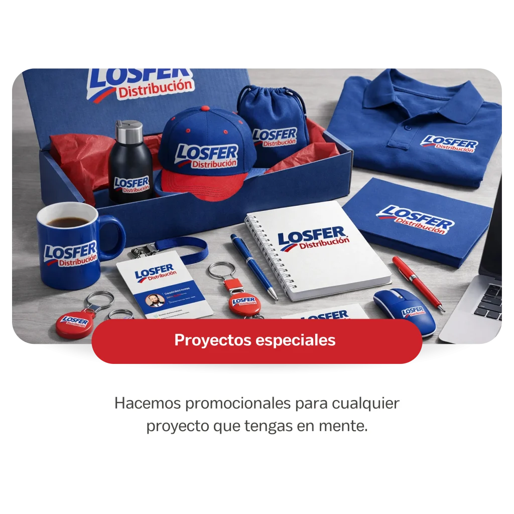 En Losfer te ayudamos a armar, producir y personalizar artículos promocionales que tu marca necesita: desde kits, hasta material para eventos, oficinas, escuelas, campañas y más.